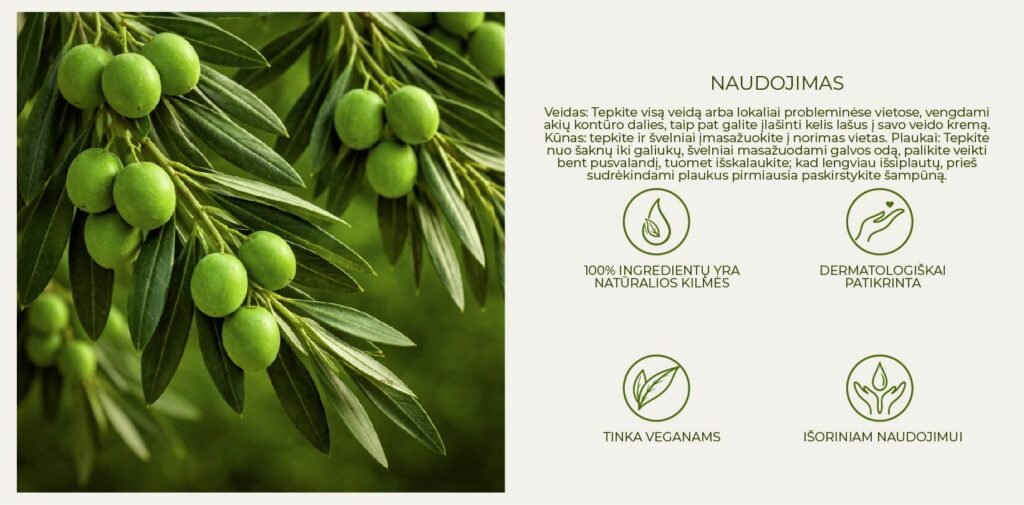 Natūralus alyvuogių aliejus visam kūnui su vitaminu E, 100ml
